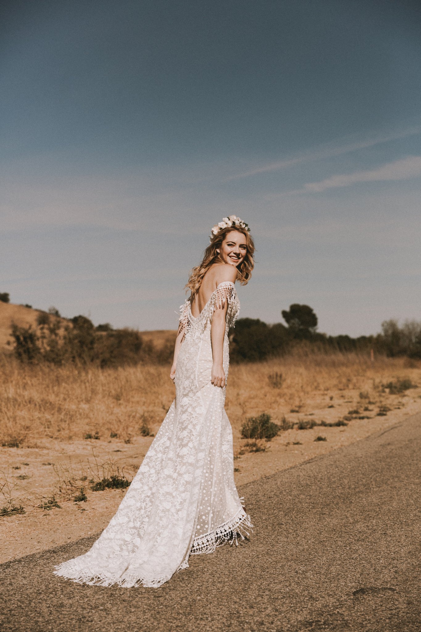 heather-off-shoulder-fringe-bohemian-wedding-dress-with-contrasting-laces-and-a-gorgeous-train