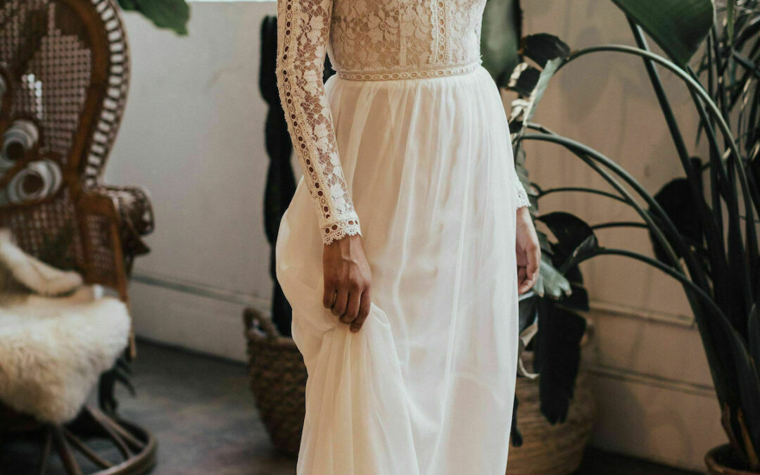 INES LACE AND CHIFFON FLOWY WEDDING DRESS