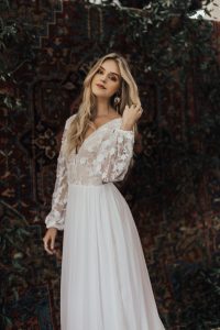 Yaya Backless Silk and Lace Flowy Wedding Dress