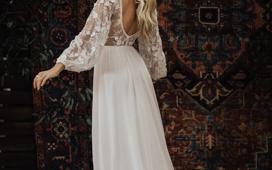Yaya Open Back SIlk and Lace Balloon Sleeve Wedding Dress