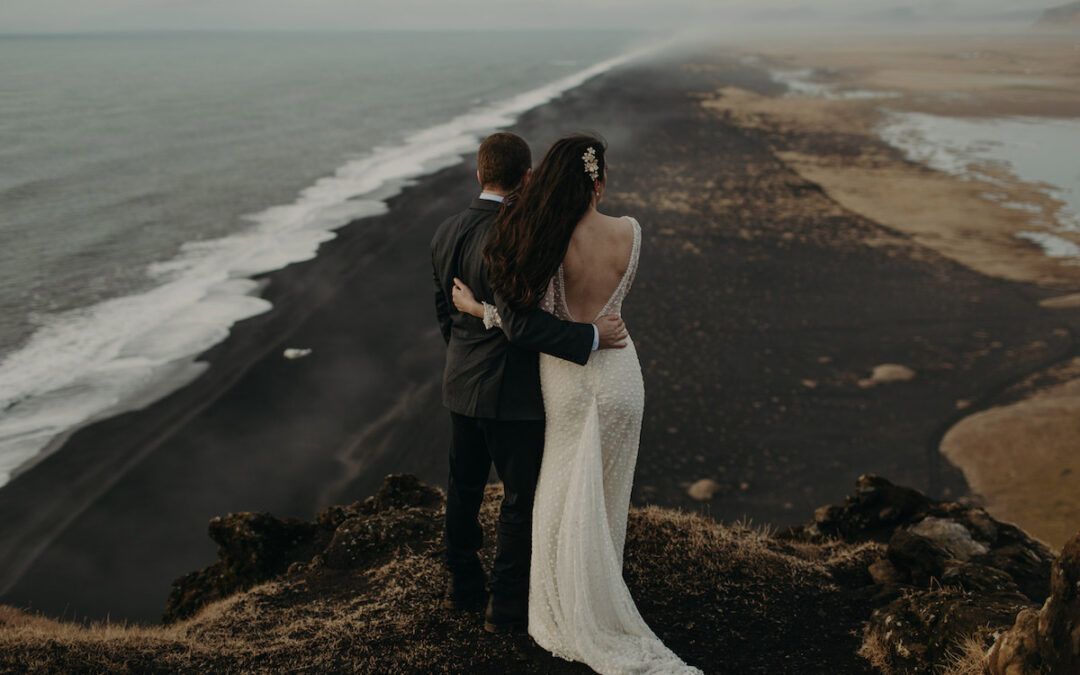 Bride Noel in Iceland wearing the Vivienne Lace Wedding Dress