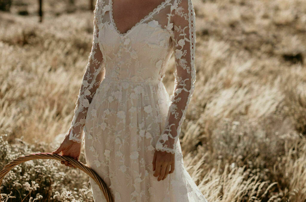 ZINNIA LACE WEDDING DRESS - Long Sleeves with Flowy Skirt