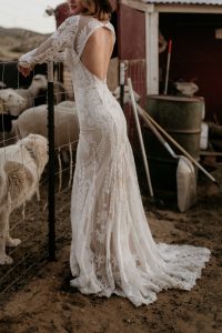 Willow-lace-wedding-dress-with-long-sleeves-cutout-open-back-and-long-train-made-in-California