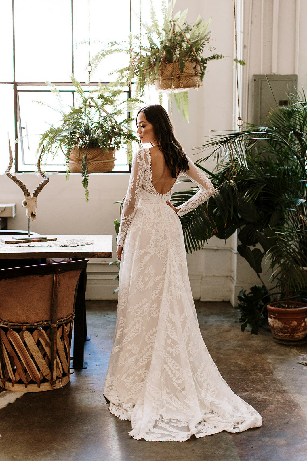 Simone Backless Lace Wedding Dress with Long Sleeves