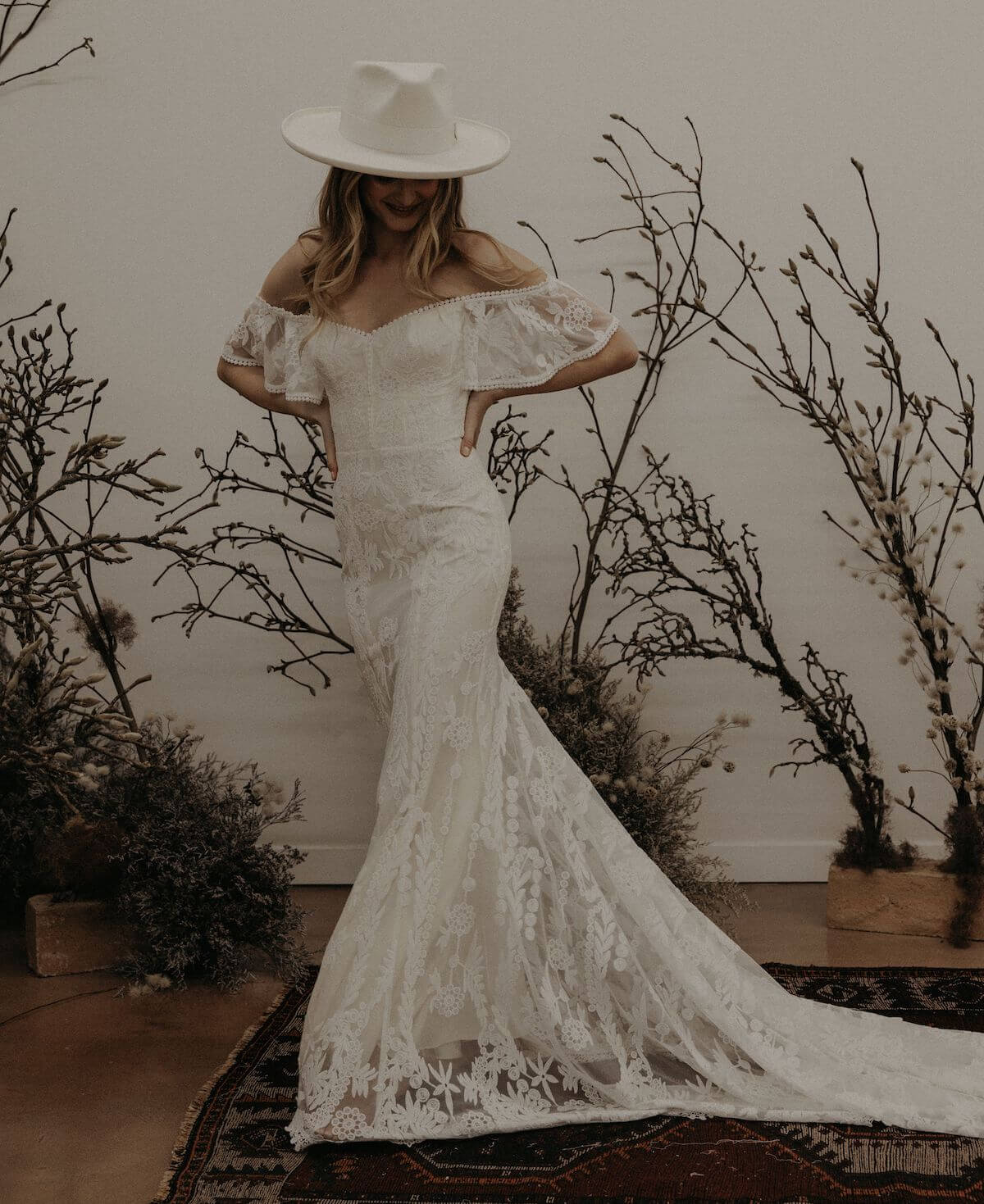 Caroline Bohemian Off Shoulder Lace Wedding Dress
