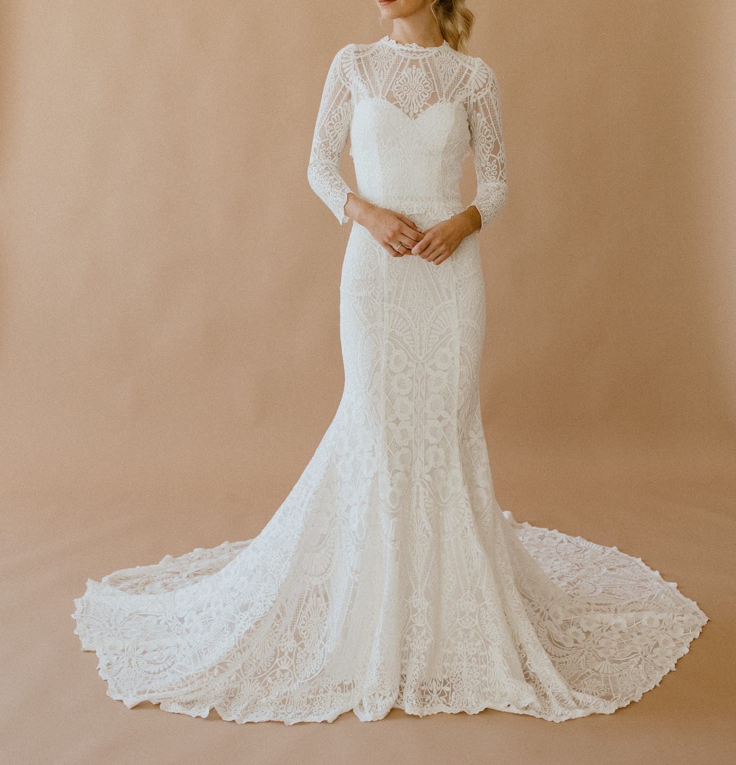 Kate-elegant-boho-romantic-lace-wedding-dress-¾-sleeves