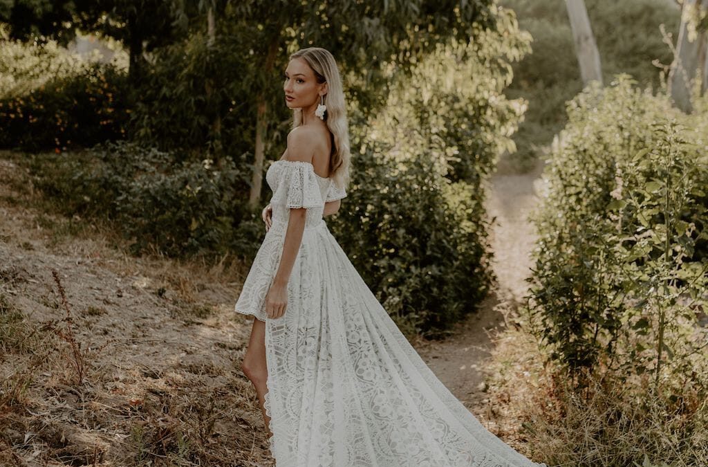 Shop-Lena-short-lace-wedding-dress-off-shoulder-neckline-removable-train