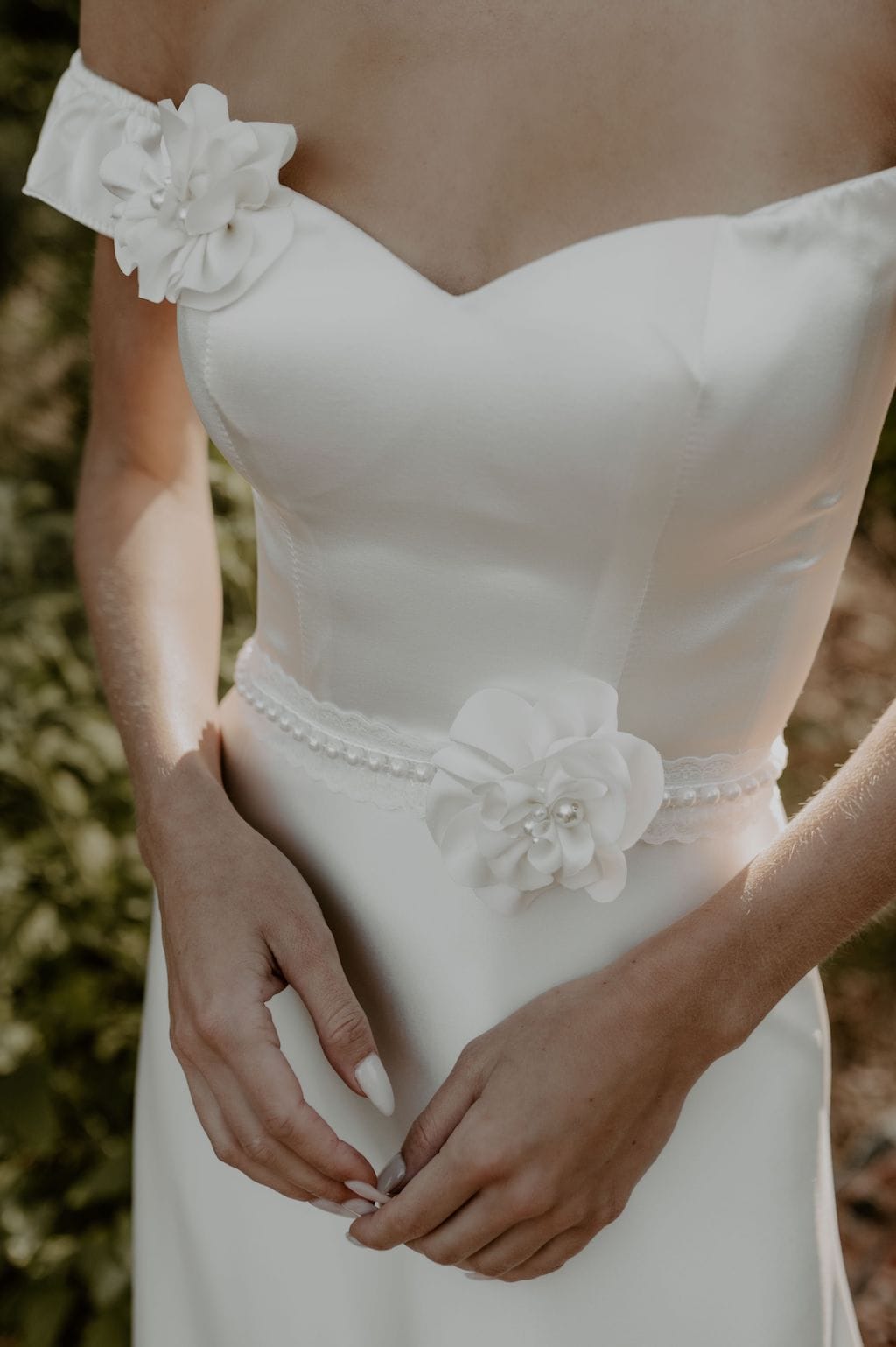 CLEMENTINE High End Silk Wedding Dress with Floral Applique