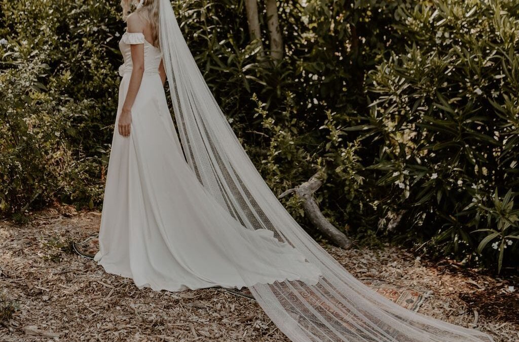 Clementine-silk-wedding-dress-shown-with-Veil