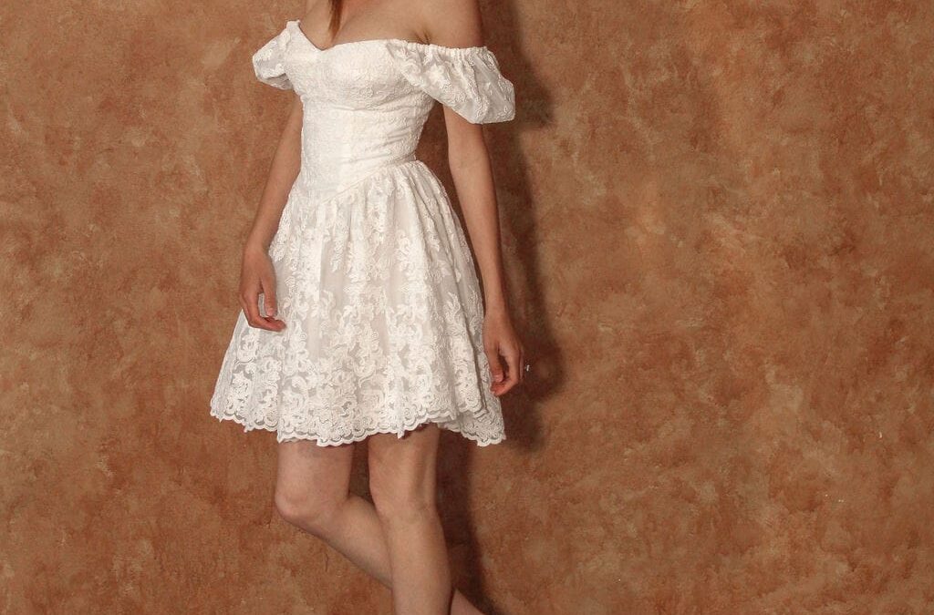 Felicity Off the Shoulder Short Lace Wedding Dress