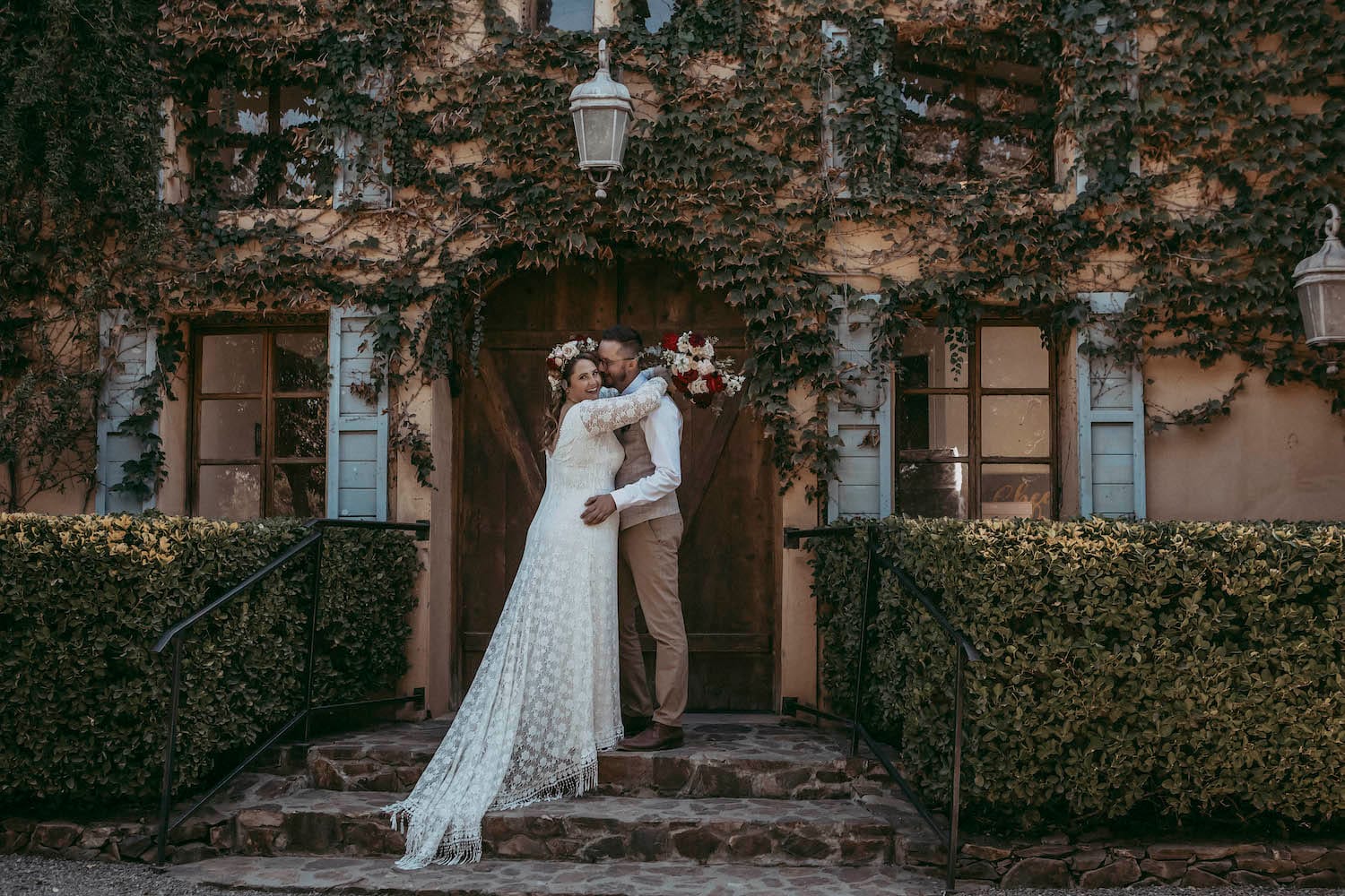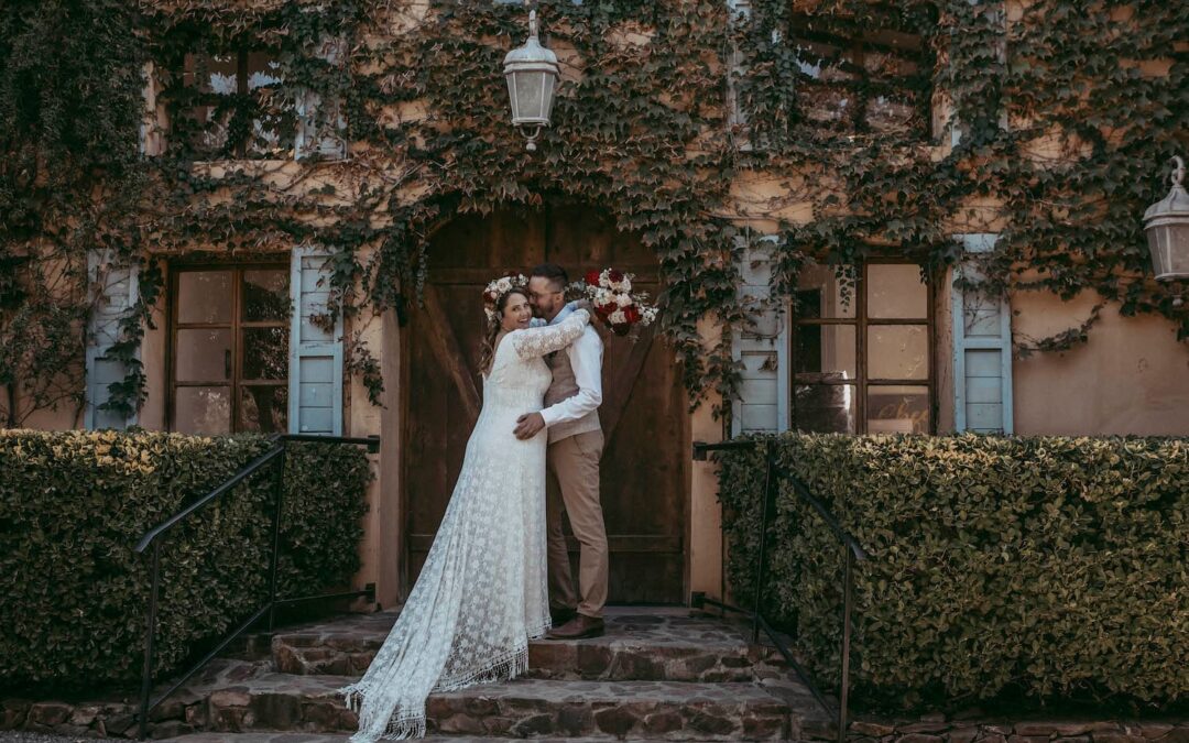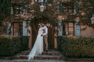 Bride wearing Marie Bell Sleeve Lace Wedding Dress
