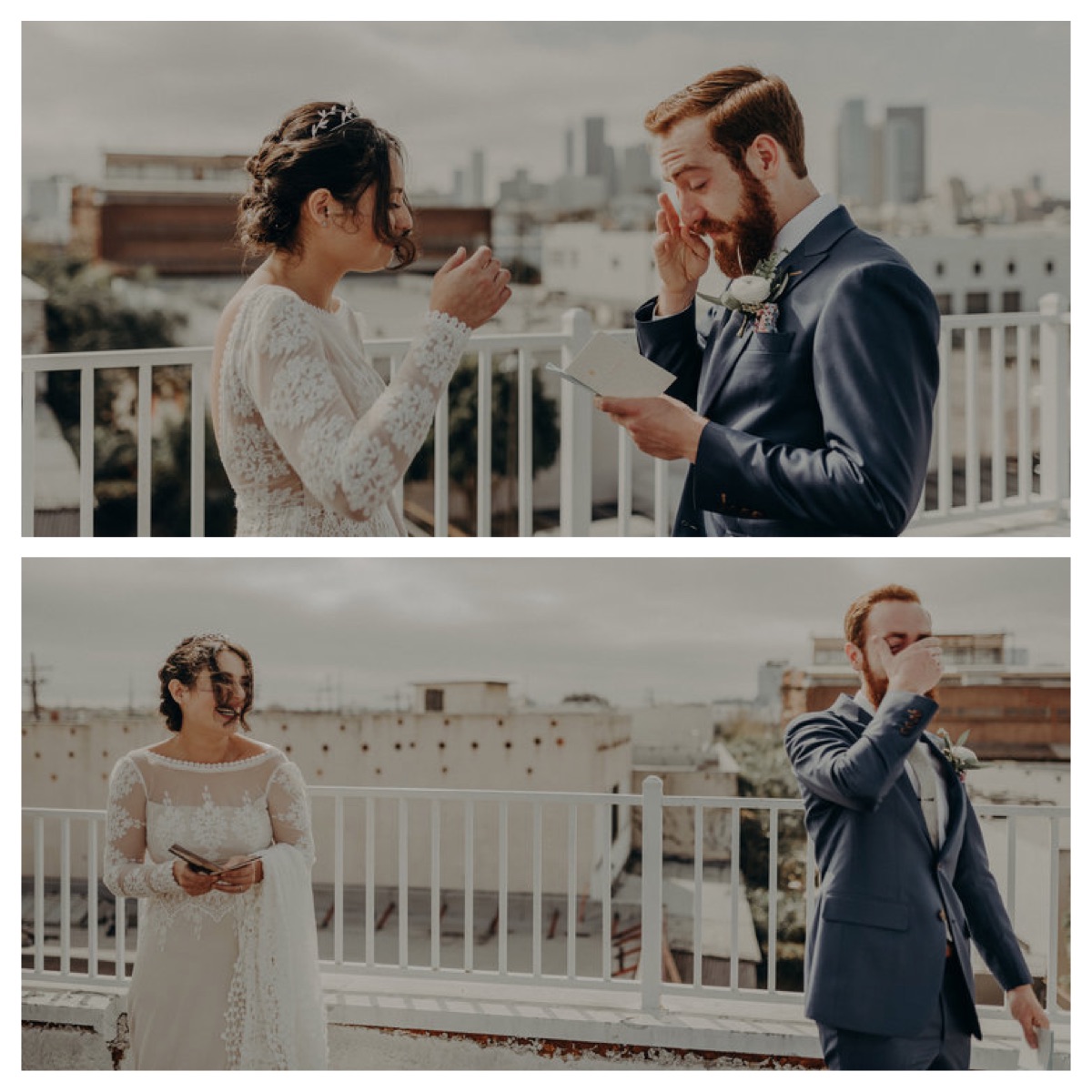 Young Boho Brride and Groom at their warehouse wedding in Los Angeles