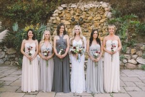 bohemian-bride-and-bridesmaids-in-mismatched-dresses