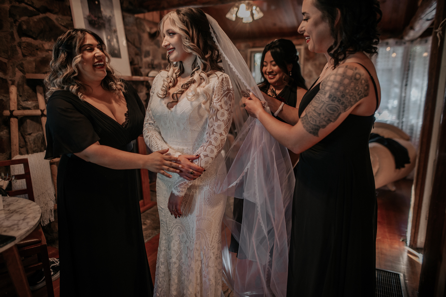 Some weddings are not about spotlight or spectacle. They are about soul. Keari and her partner set out to create a day that was honest, joyful, and uniquely theirs. From singing early 2000s emo songs to sipping tiki drinks in a forest lodge, their wedding was not traditional. But it was unforgettable. And at the center of it all was a lace wedding dress that made Keari feel like herself, fully and completely.