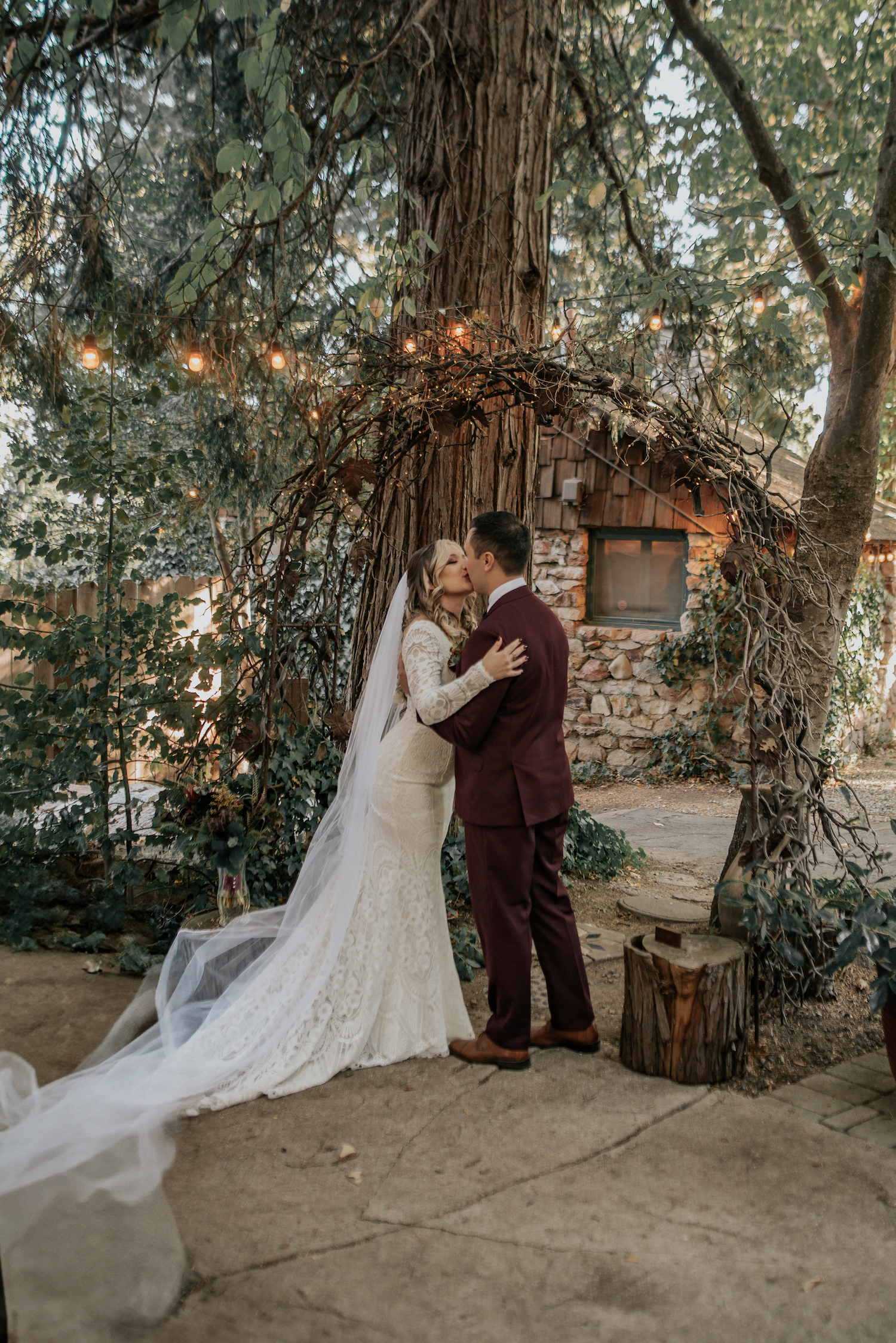 Keari and her husband had originally dreamed of a small elopement in the forest. They both love nature and knew they wanted a peaceful setting surrounded by trees and the people they care about most. In the end, they celebrated with about 35 guests at Willow Woods Park in Skyforest, near Lake Arrowhead.