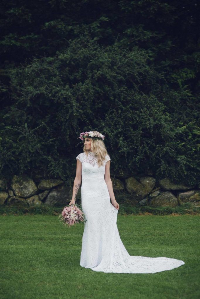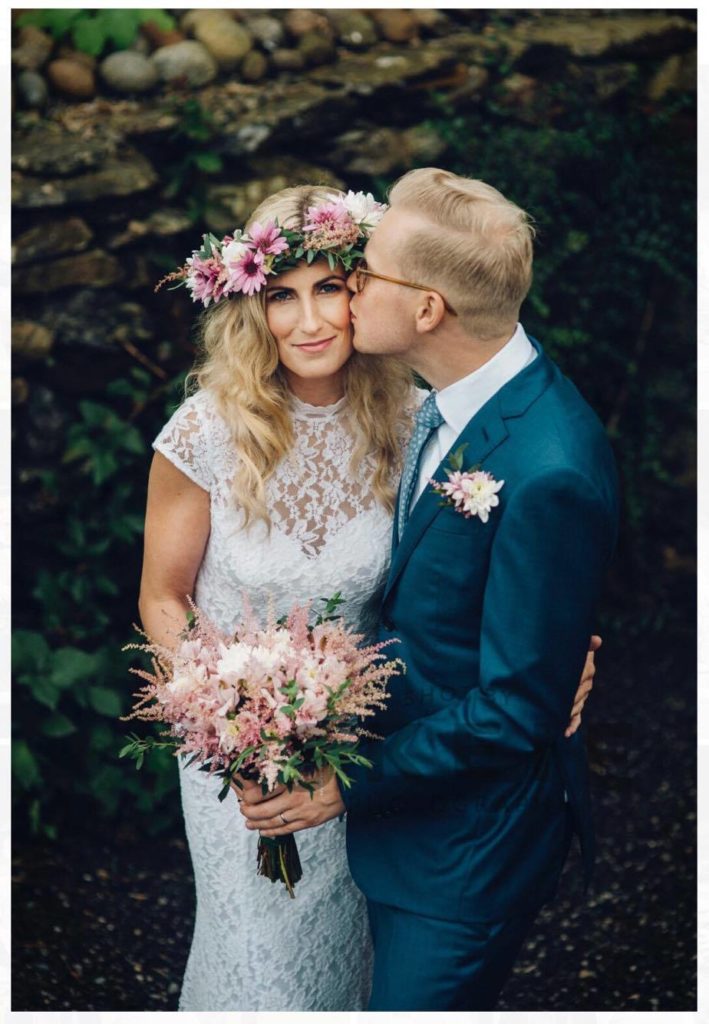 The ceremony was overseen by one close friend whilst another friend, Lisa, sang Håkan Hellström – Valborg, a Swedish song with poignant, beautiful lyrics. Vibeke’s best friend crafted her bouquet, wild, summery and gorgeous and V wore a truly bohemian wildflower crown which couldn’t have looked more perfect with her laid-back gown. The room was decorated with a score of lights and wildflowers by the couple personally, which turned out to be truly rewarding.