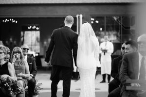 the-bride-and-groom-walks-from-the-alter-facing-thrir-guests-at-the-fighouse-venue-in-los-angeles