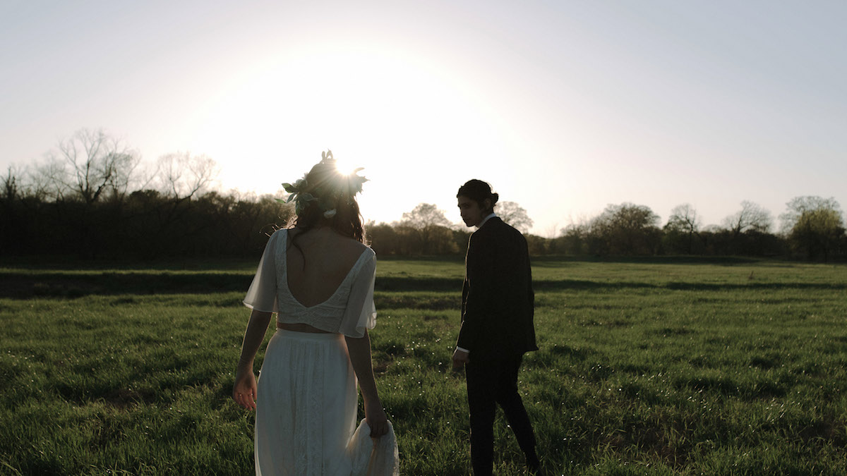 boho-bride-and-groom-she-wears-a-backless-two-piece-silk-weddomg-dress