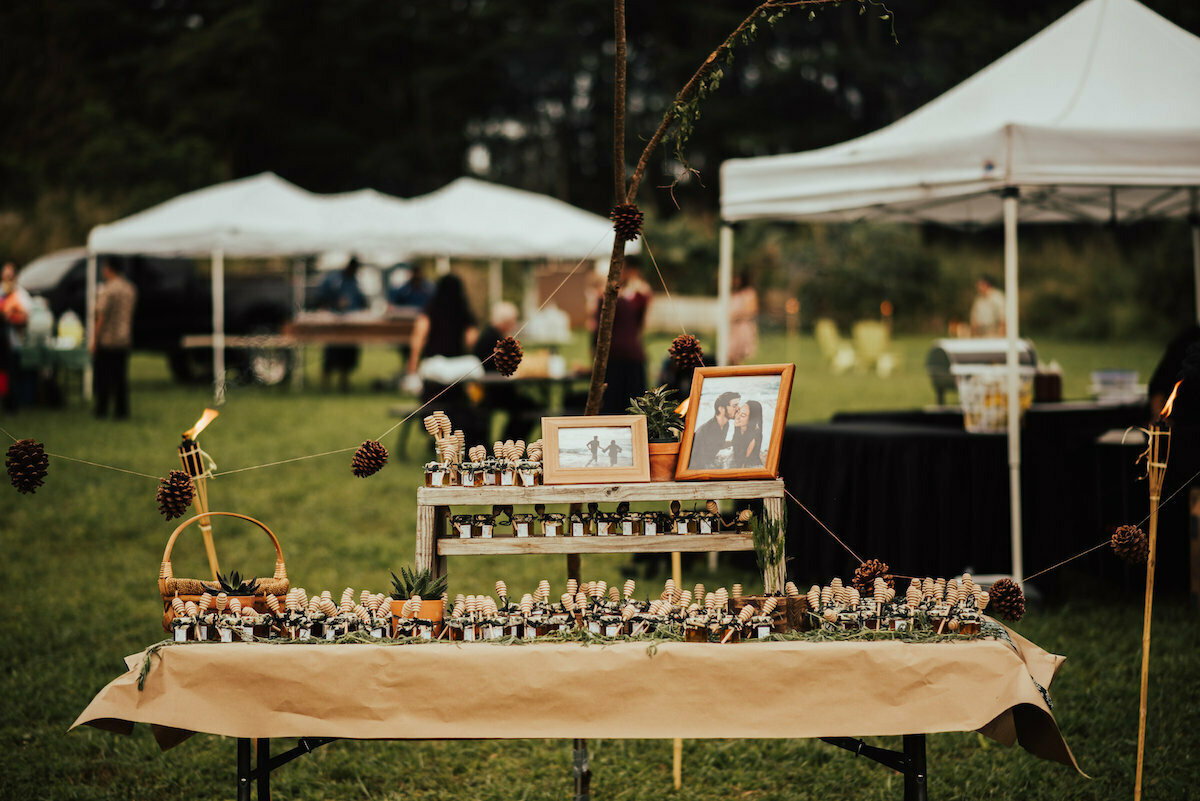 the-dessert-table-adorned-with-photod=of-the-couple-boho-beach-wedding-inspo