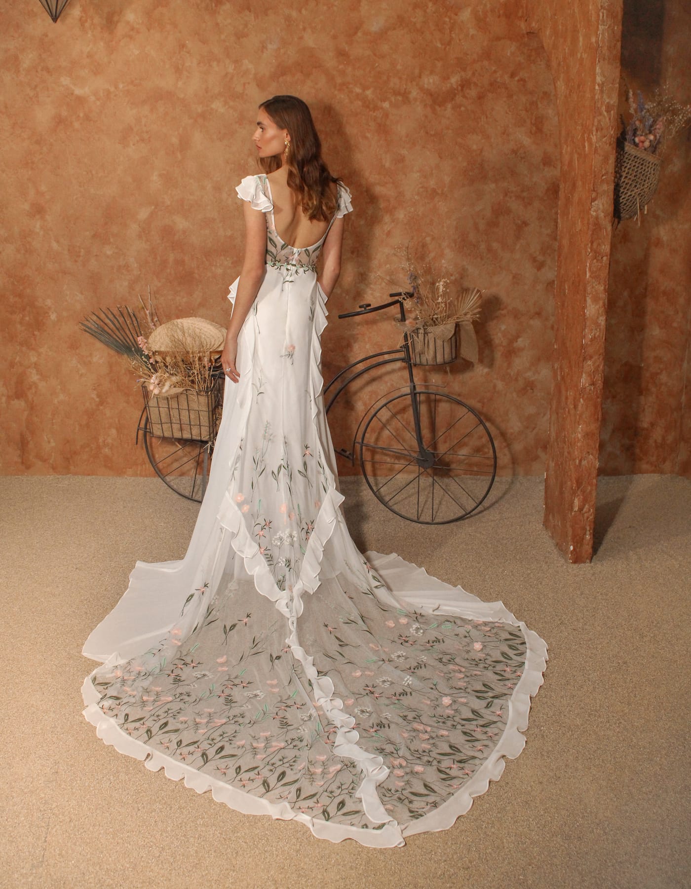 Lily – Colorful Lace Wedding Dress with Pastel Floral Embroidery