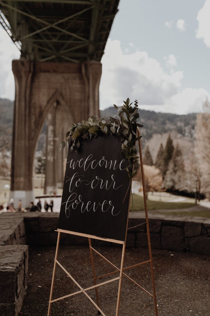 welcome-sign-cathedral-park-wedding-Portland-Oregon