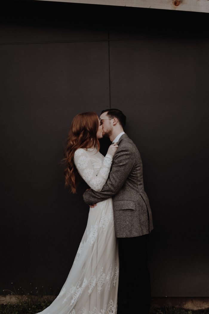 Bride Hanna wearing Lisa Boho Lace Dress