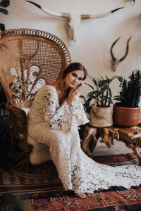 Dreamers and Lovers boho bell sleeves crochet wedding dress made in California