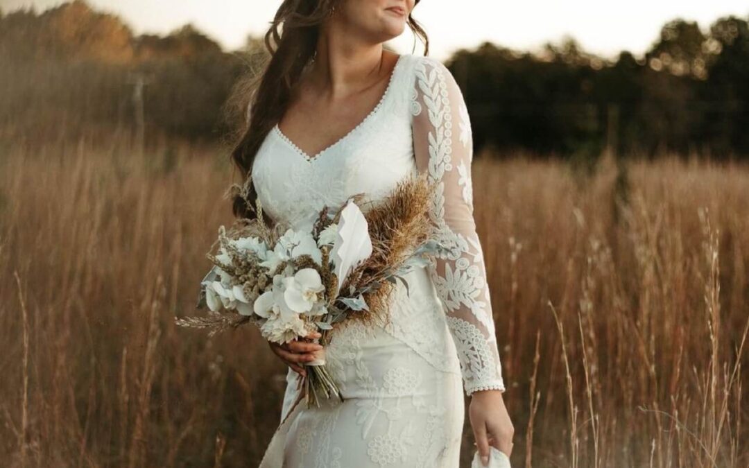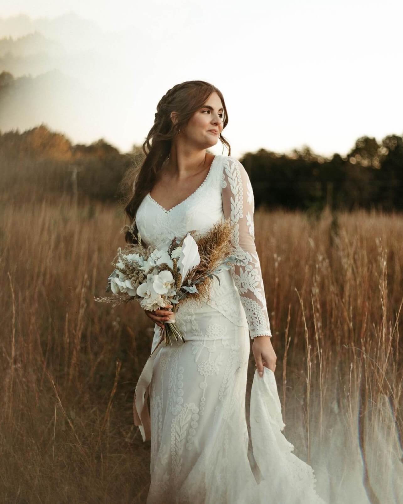Bride McKenna wearing Violetta Long Sleeve Wedding Dress