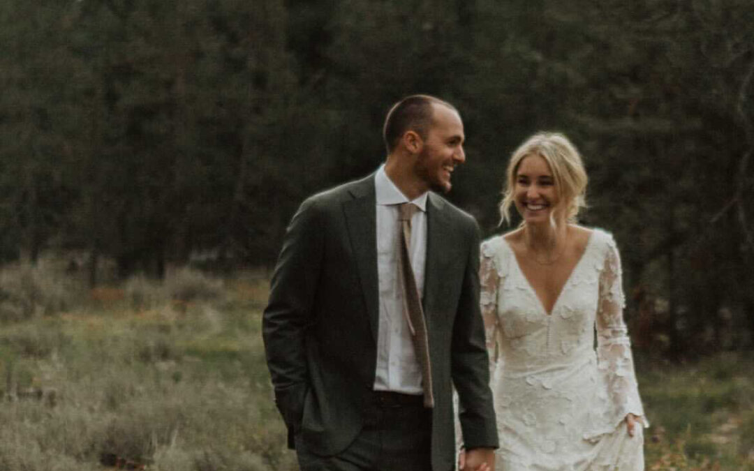 Bride-wearing-Bell-Sleeve-Lace-Boho-Wedding-Dress