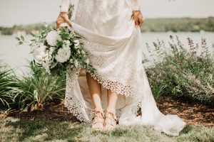 bride-styling-inspiration-nude-sandals-is-the-perfect-accessory-for-this-textured-lace-flowy-boho-wedding-dress