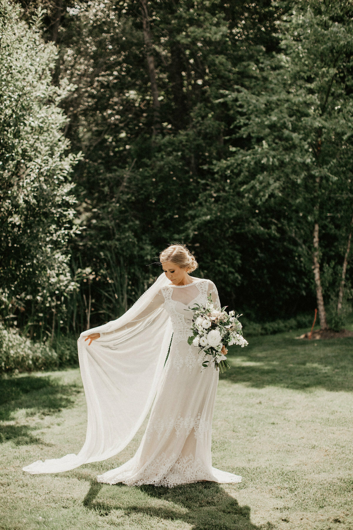 bohemian-bride-wearing-dreamy-simple-long-veil-with-a-subtle-green-white-bouquet-in-a-whimsical-lace-flowy-wedding-dress-with-nature-as-the-perfect-backdrop
