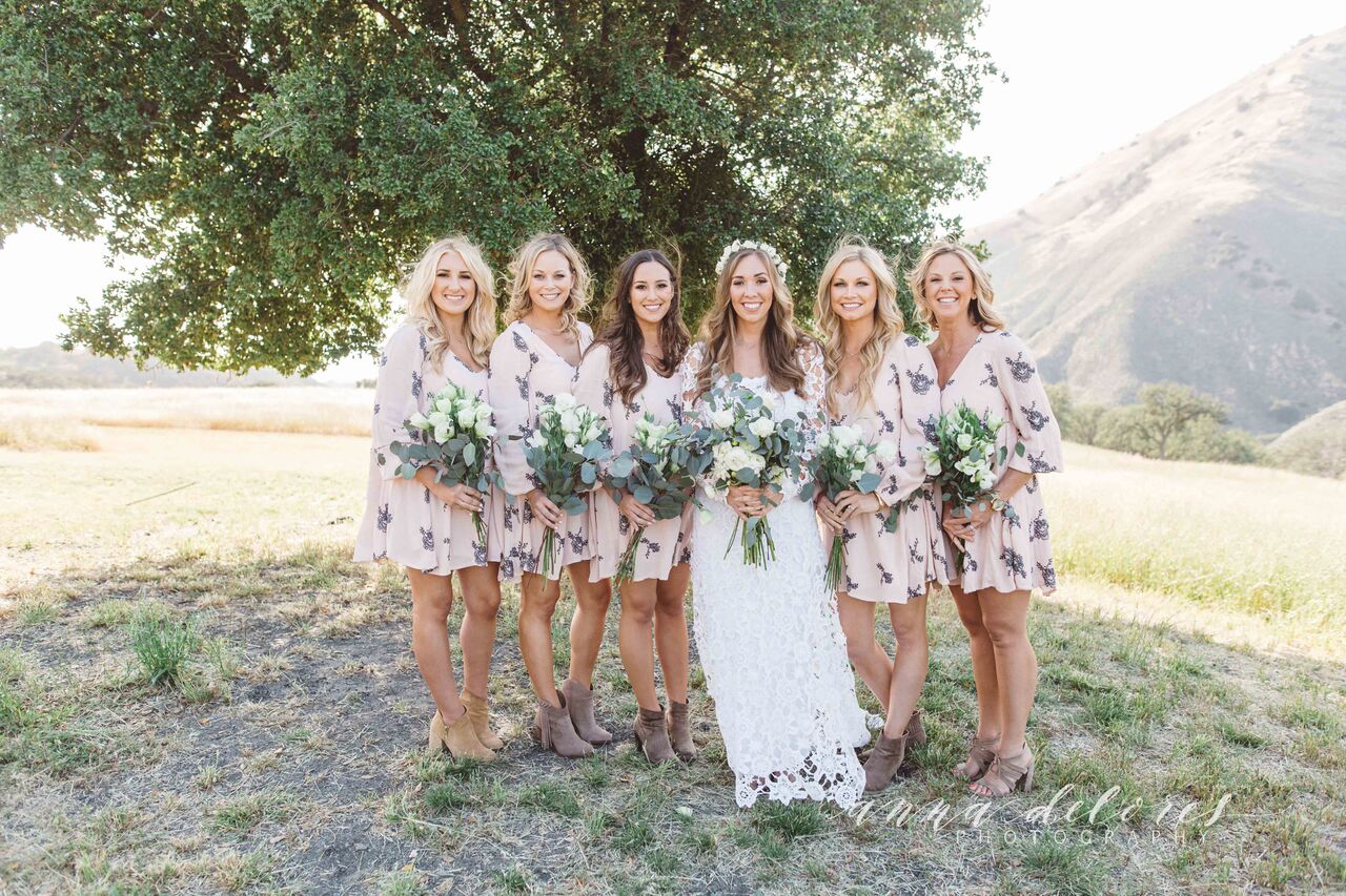 a-boho-wedding-at-a-rustic-farmhouse-in-california-here-with-her-bohemian-bridesmaids-in-floral-dresses
