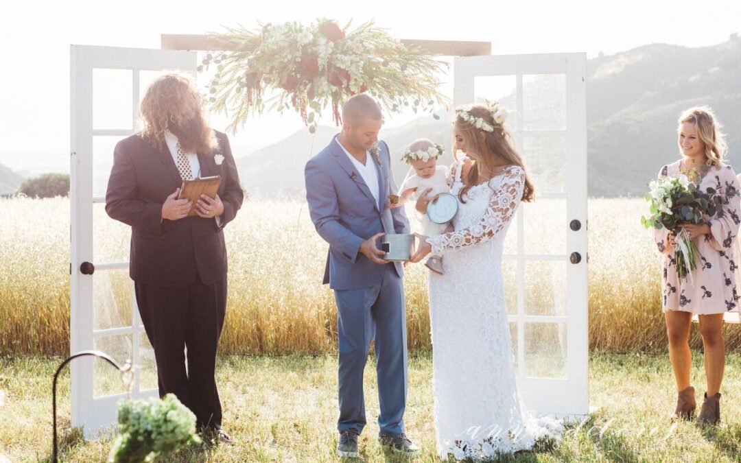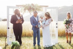 gorgeous-bride-and-groom-with-their-baby-at-the-altar-at-figueroa-mountain-farmhouse-wedding-in-california