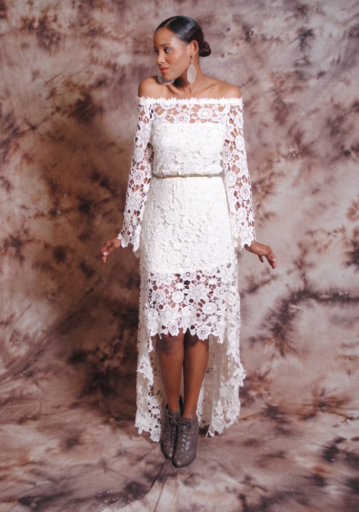 bohemia-wedding-dress-with-off-the-shoulder-neckline-and-shorter-at-front-and-longer-at-back