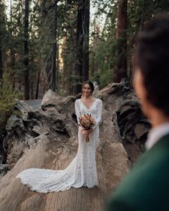 Bride wearing Josephine Long Sleeve Lace Boho Wedding Dress