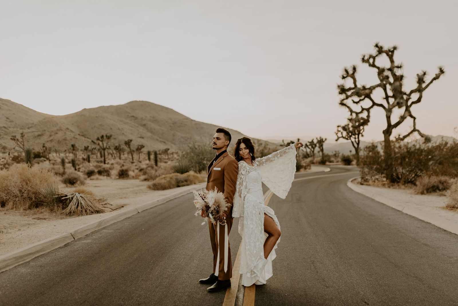 Bohemian-bride-wearing-a-lace-boho-wedding-dress-in-Joshua-Tree
