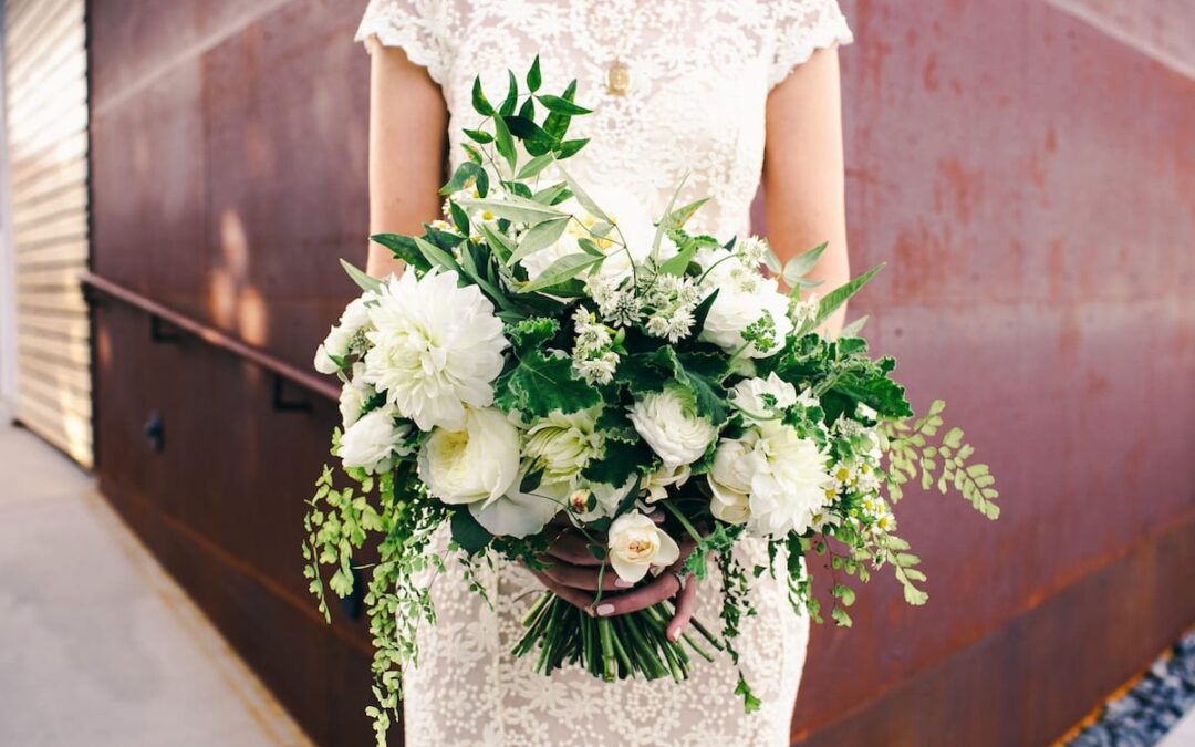 rustic-wildflower-green-wedding-bouquet-at-LA-venue-smog-shoppe