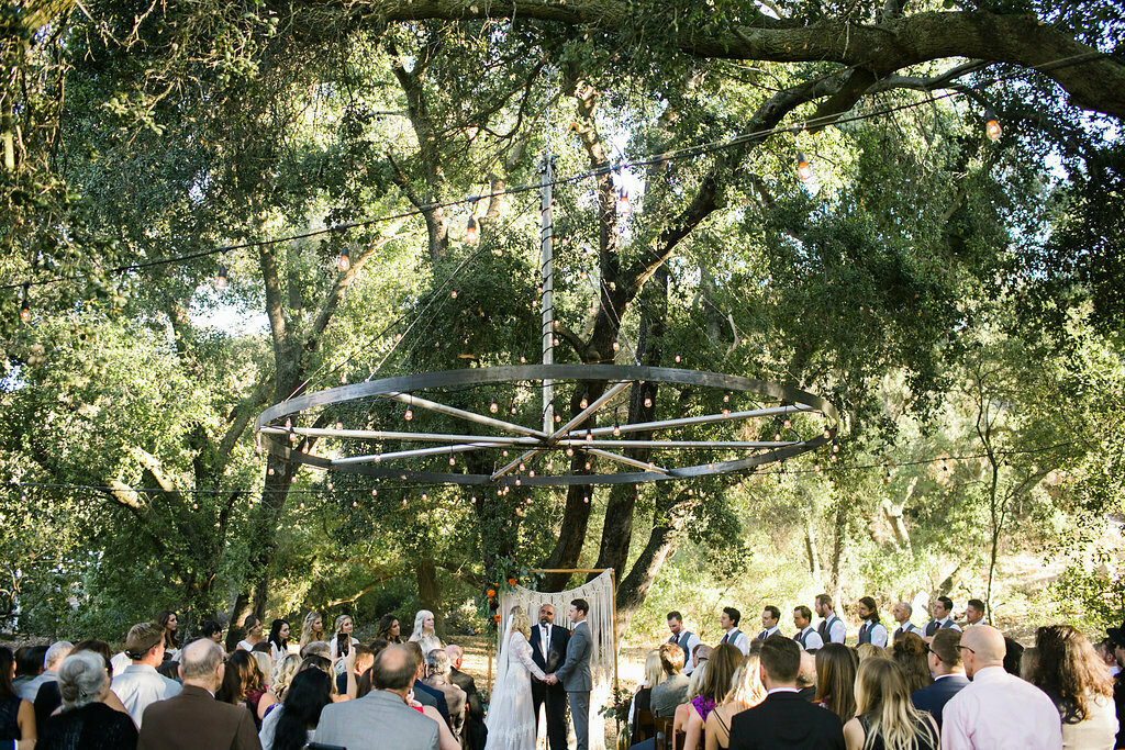 an-intimate-california-wedding-under-the-oak-tree-with-macrame-lace-ceremony-backdrop-and-a-simple-longsleeve-boho-chic-lace-wedding-dress