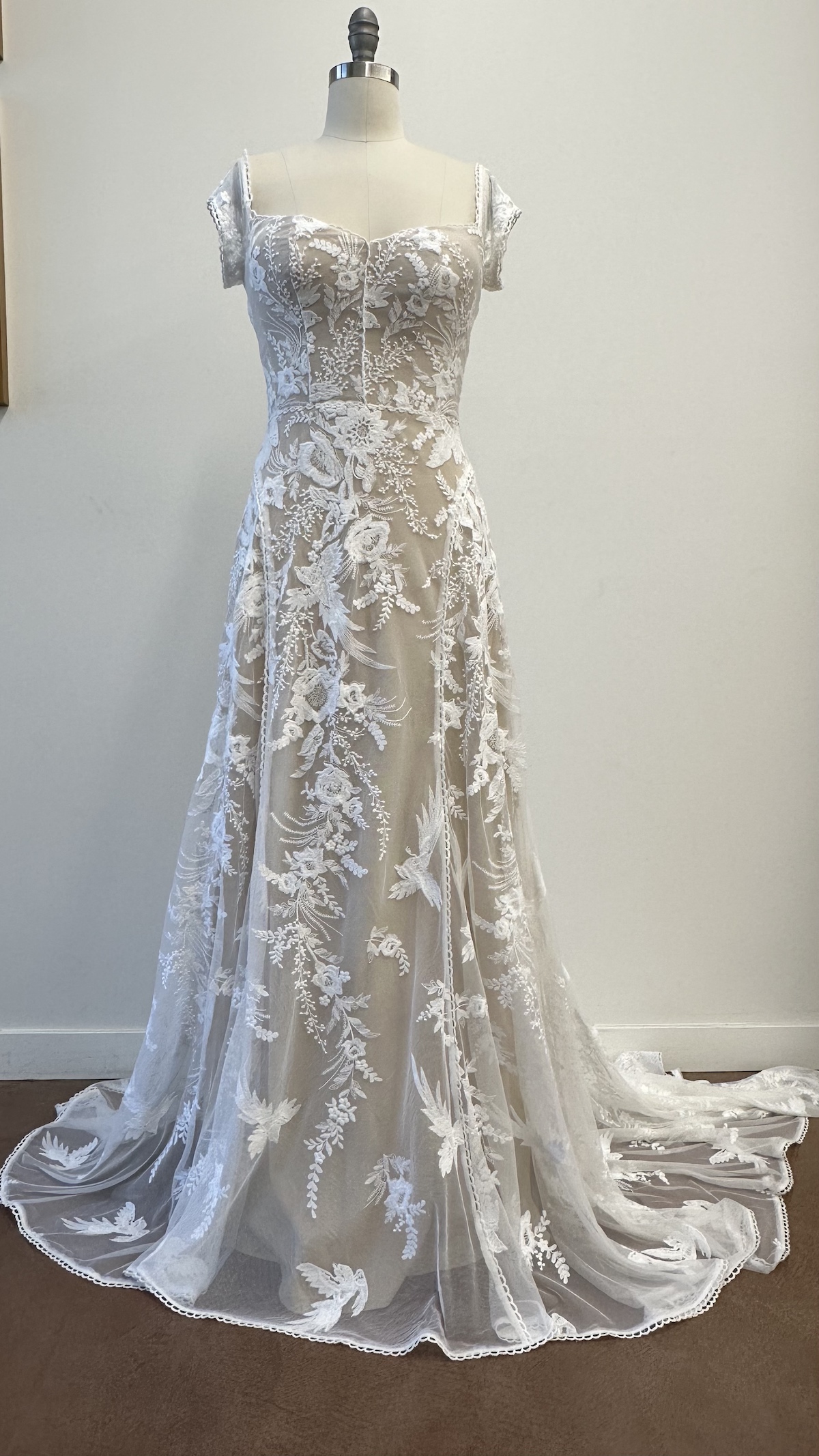 Standard-sized gowns are handcrafted and ship in 12–14 weeks. Every order includes complimentary sleeve and dress length adjustments, with no added time to your delivery.