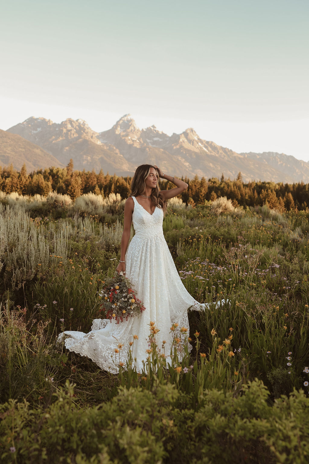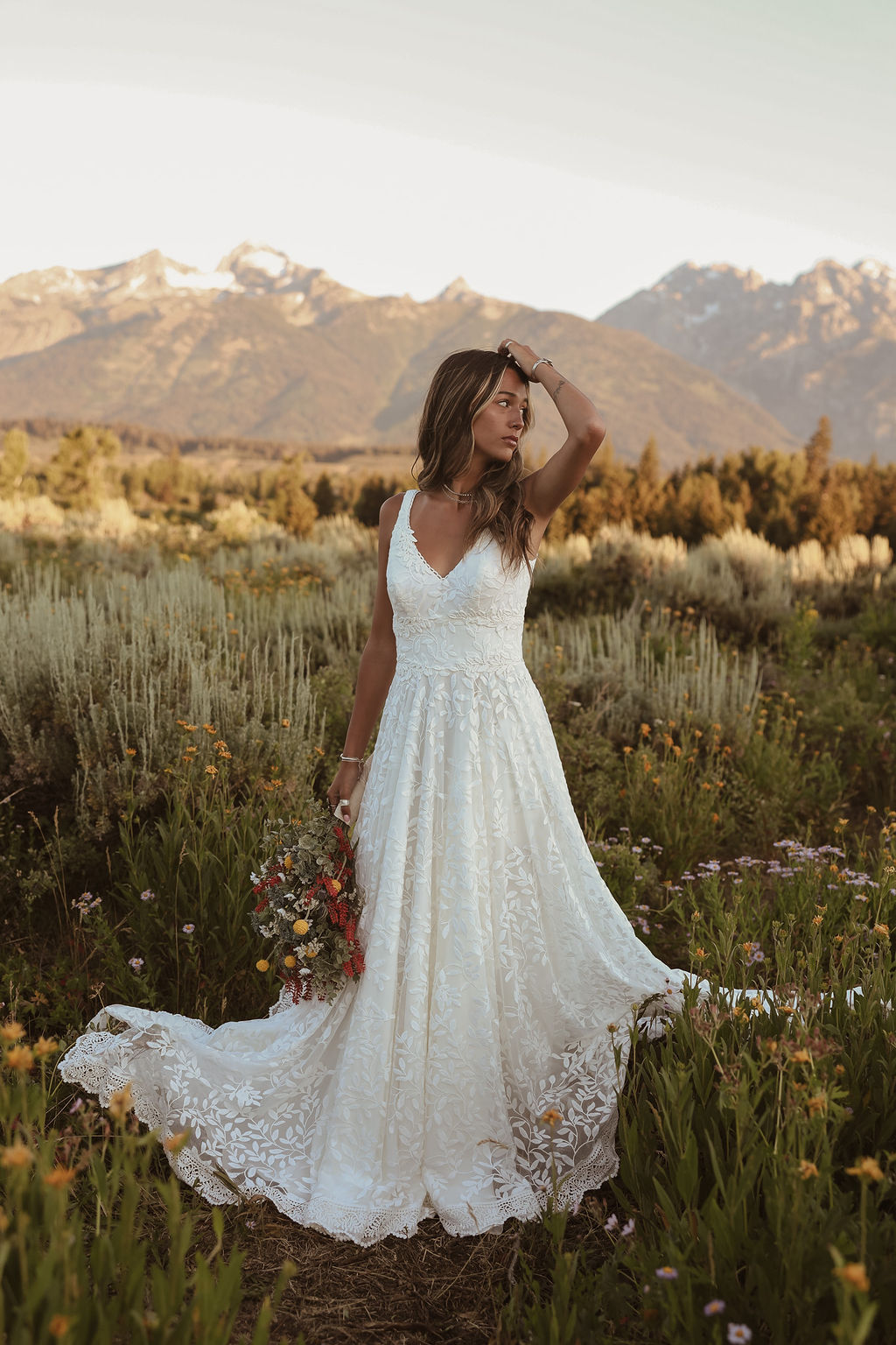 The Genevieve boho wedding dress is an ode to simple feminine charm and expressing your laid back self with no frills and a whole lotta lace!