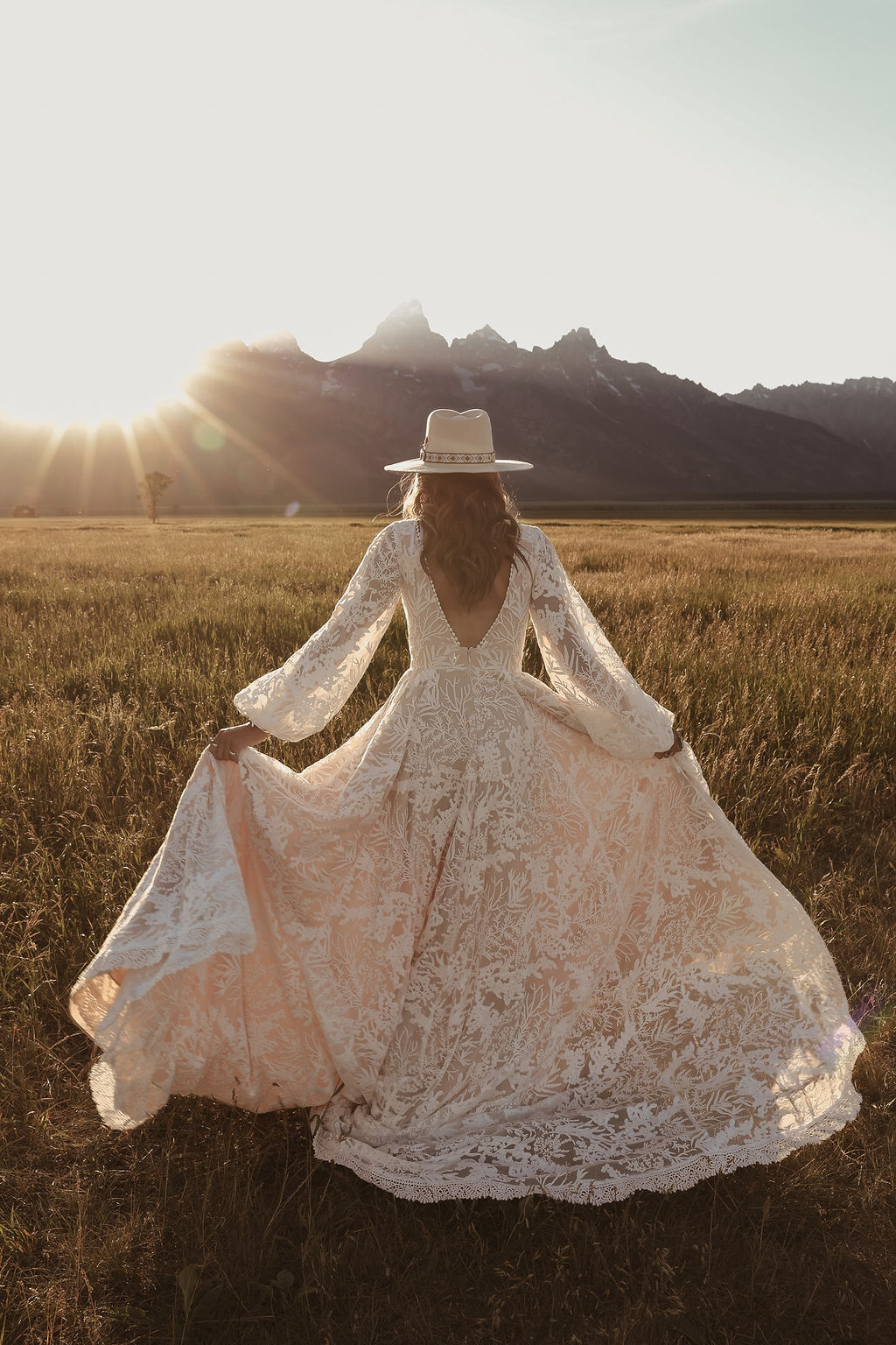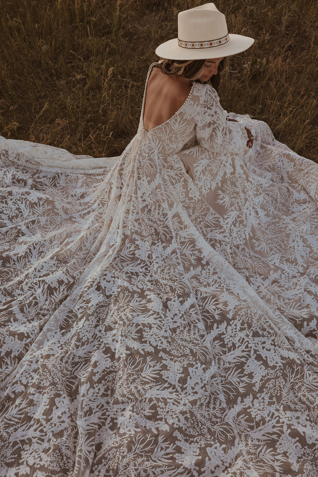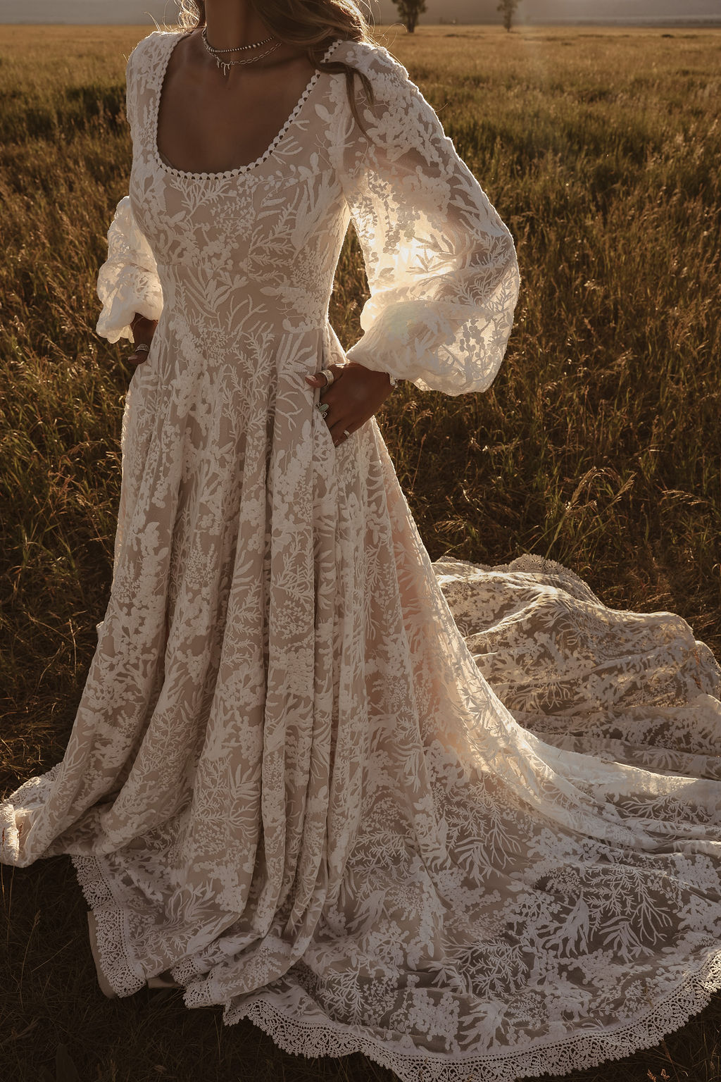 Sierra Flowy Lace Wedding Dress with Pockets | California Romance