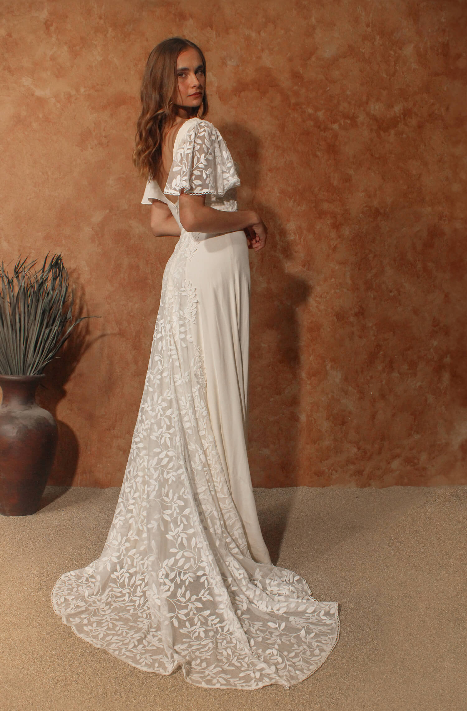 The Callista boho wedding dress features an off-the-shoulder design that will bring your laid-back wedding dreams to life. From top to tail this masterpiece exudes an air of playful elegance that’s quite simply unforgettable.