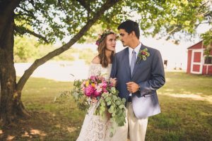 bride-wears-sydnie-lace-off-shoulder-boho-wedding-dress-to-marry-her-grrom-at-their-oklahoma-venue