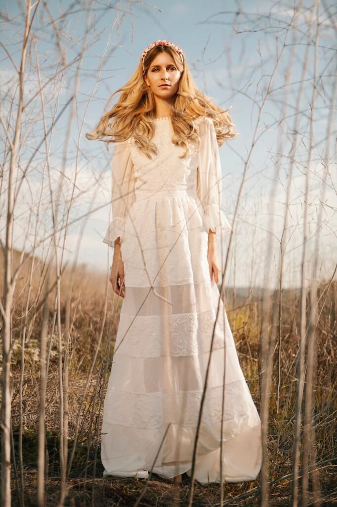 A mix of muted exquisite silks, soft tulle net, silk georgette and cotton embroidered lace structures the collection. We’ve incorporated exquisite floral patterned embroidered lace, as well as uniquely beautiful geometric-style embroidered patterns. The collection’s silhouettes range from form fitting to looser dreamy flowy fits, all promising to flatter the bride and designed for comfortable wear. We want brides wearing the Eternal Romance collection to feel like they’re walking on clouds- because that’s how true love should feel.
