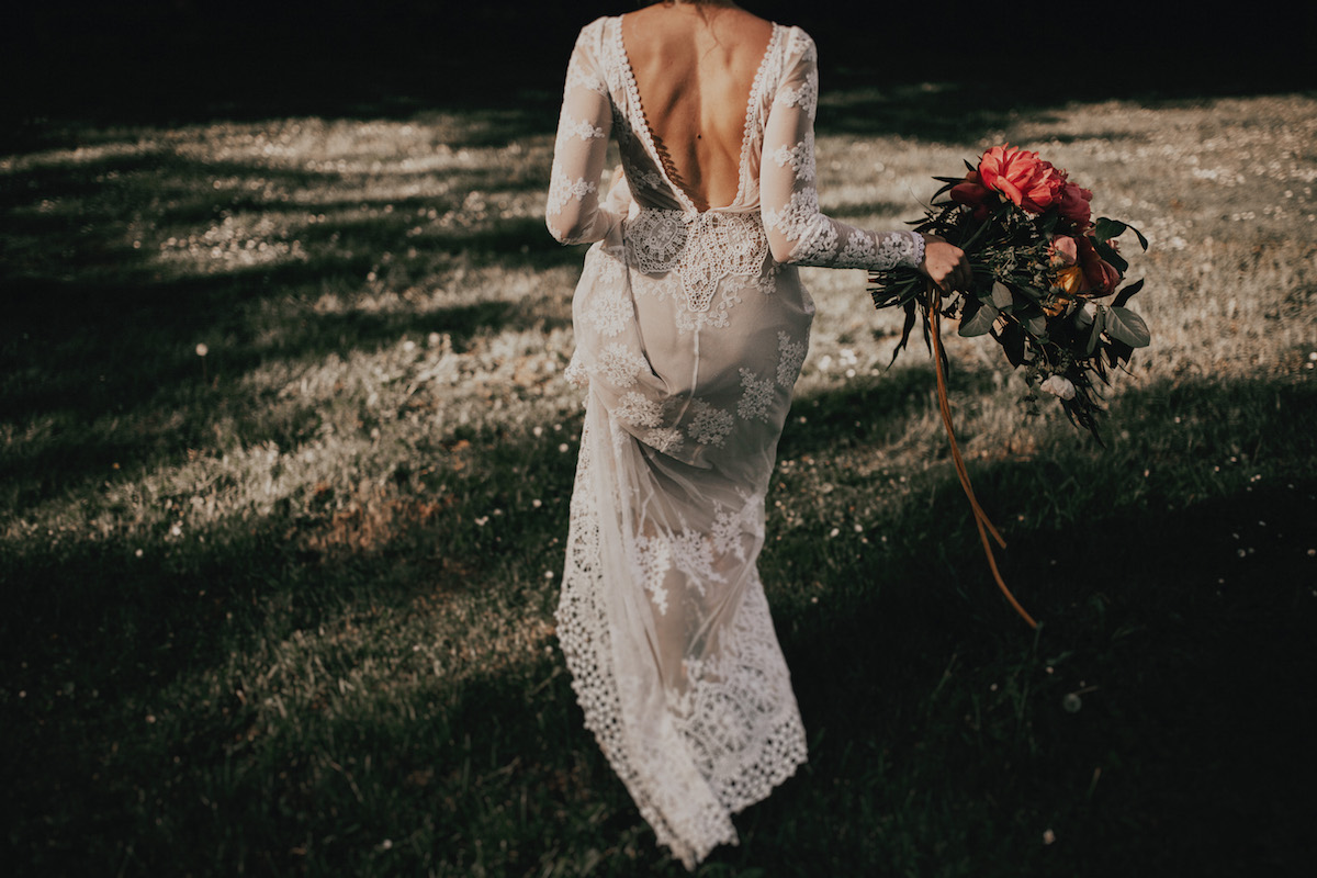 LISA LACE WEDDING DRESS - Lace Wedding Dress with Applique Mesh Design
